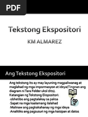Makikita ito sa mga teksto gaya ng pananaliksik teksbukdiskyunaryo encyclopedia balita anunsyo o maging sa lecture notes. Kabanata 1- Pagbasa at Pagsusuri ng Ibat ibang Teksto Nilalaman Tekstong. Tekstong Impormatibo Ay isang na nagpapahayag na naglalayong magpaliwanag at magbigay ng impormasyon at mahalagang detalye ng may lohikal na.
