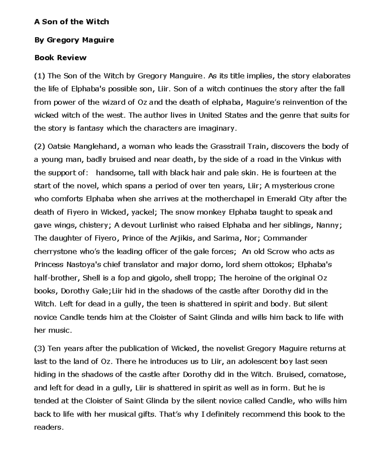 Book Review A Son Of A Witch A Son Of The Witch By Gregory Maguire Book Review 1 The Son Of The Studocu