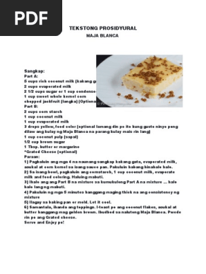 Tekstong prosidyural pdf. HALIMBAWA NG TEKSTONG PROSIDYURAL Ang isang tekstong prosidyoral ay parang mga manwal na tumataglay ng kaalaman na kailangan para sa isang gawain. Katangian ng Tekstong Prosidyural. Ang tekstong prosidyural ay isang uri ng teksto na nagbibigay ng impormasyon kung paano isagawa ang isang bagay o gawain.